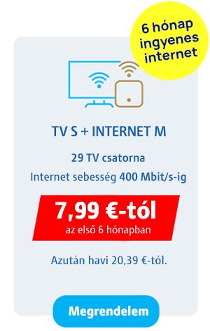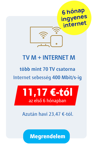 TV csomagjaink gazdag programkínálatot, 7 napos TV archívumot és a legjobb sportközvetítéseket kínálják. A gyors optikai internet stabil, akár 400 Mbit/s sebességű kapcsolatot biztosít, melynek köszönhetően kényelmesen streamelhet nagyfelbontású filmeket, online játékokat játszhat vagy dolgozhat otthonából. Ráadásul az aktiválási bónusznak köszönhetően az internetszolgáltatás beállításáért semmilyen díjat nem kell fizetnie.